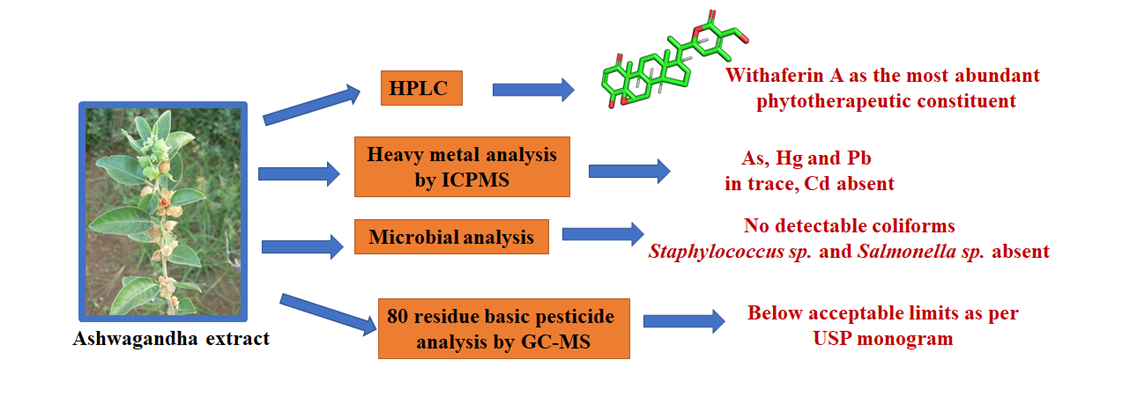 Keywords: Ashwagandha, Withaferin A, phytotherapeutics, material safety; heavy metals; pesticides